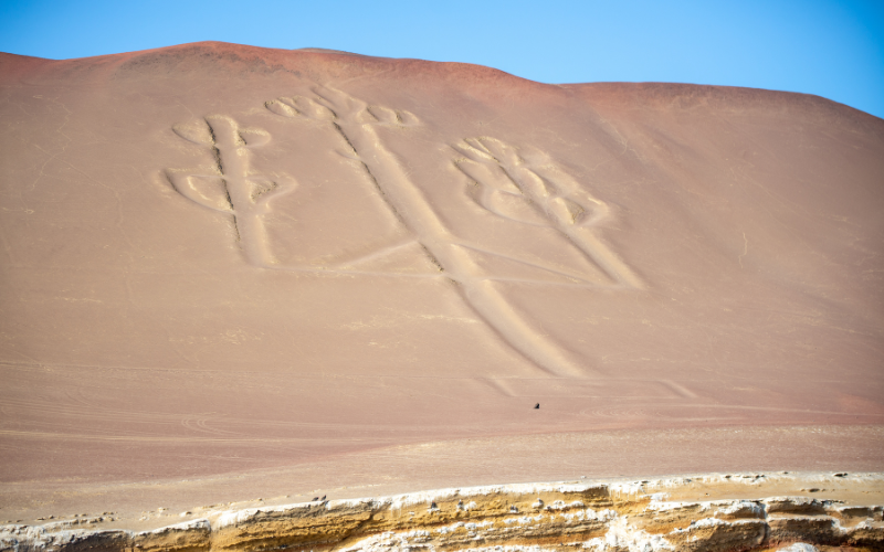 The Candelabra Geoglyph, etched into the Paracas Peninsula’s sandy hillside, is a mysterious and iconic landmark visible from the sea. Measuring over 180 meters tall, its origin remains debated—linked to ancient cultures or navigational use. It’s a fascinating highlight seen during boat tours to the nearby Ballestas Islands.